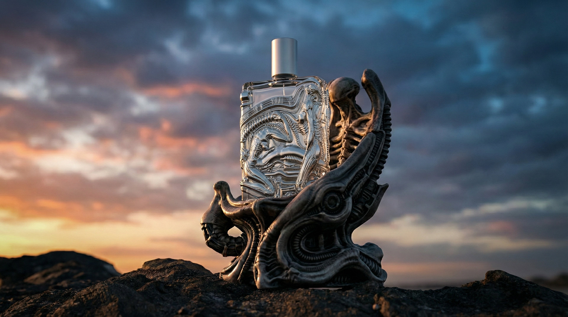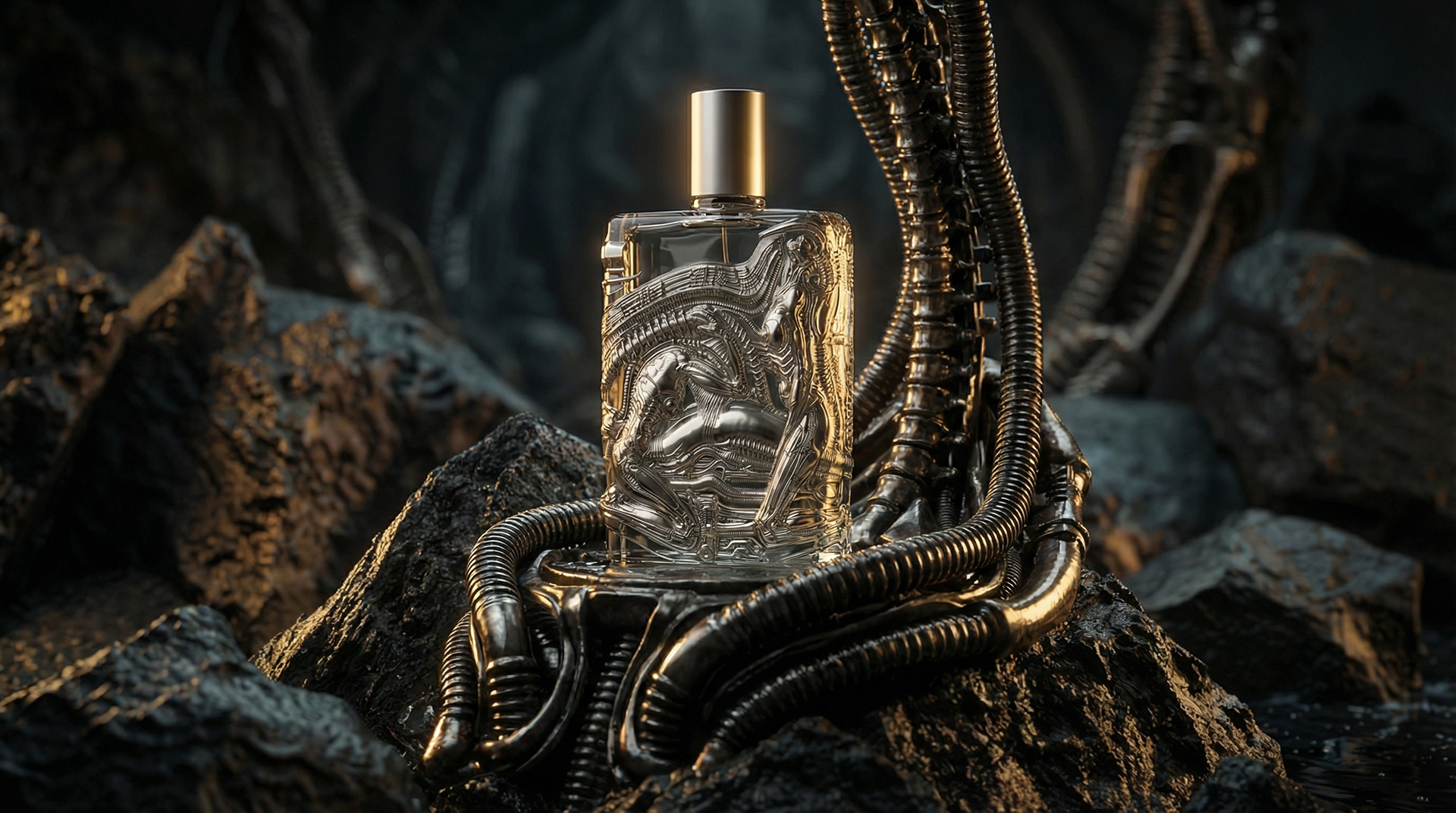 AI-generated perfume advertising project inspired by the works of H. R. Giger. The concept features original visual design and naming developed by me, along with AI art direction and comprehensive photo, video, and audio post-production refinements