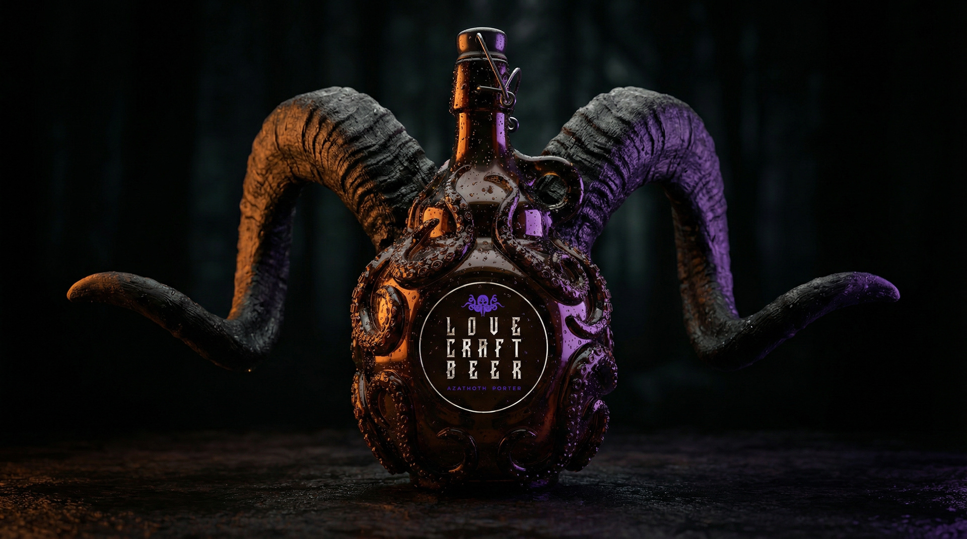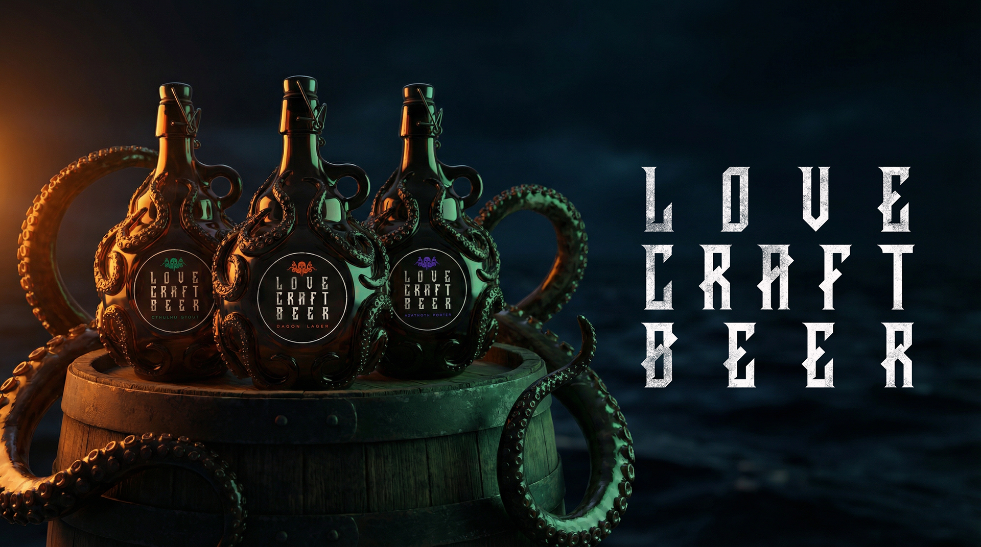 Design and animation for a craft beer brand inspired by the style of writer H. P. Lovecraft.