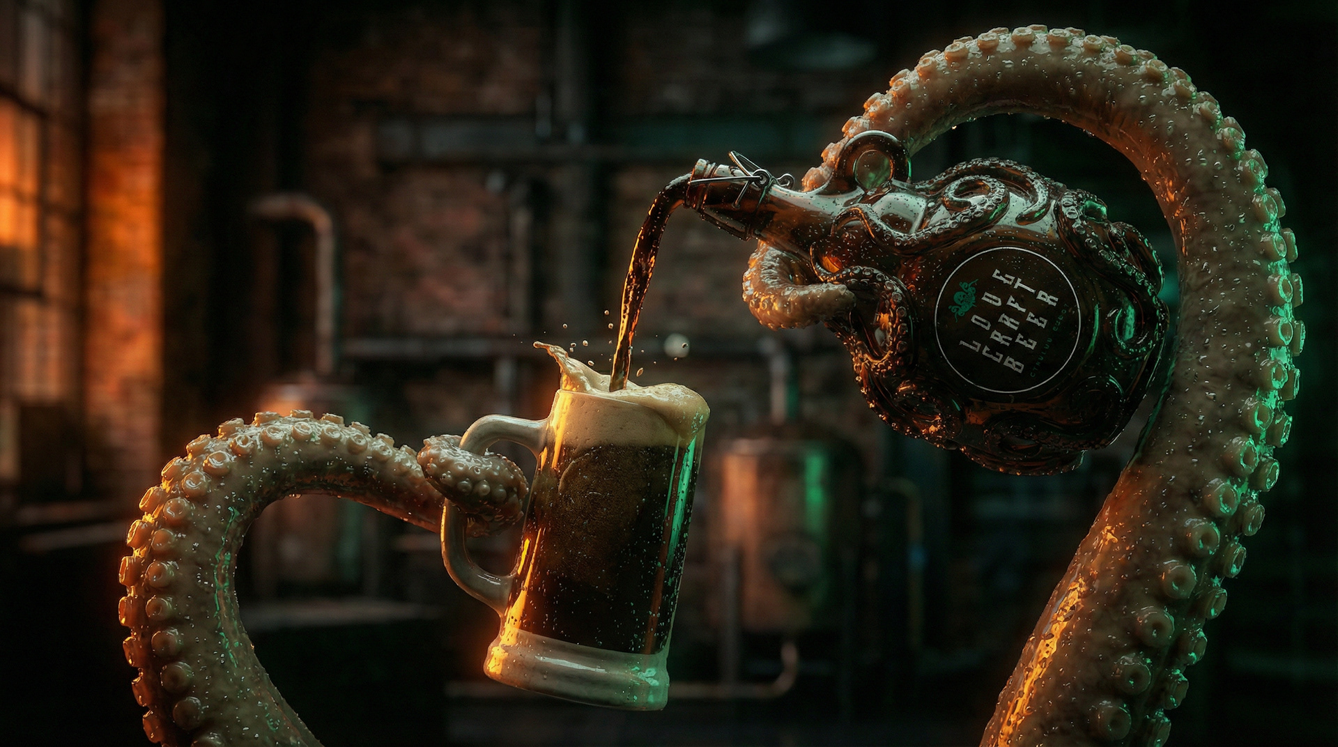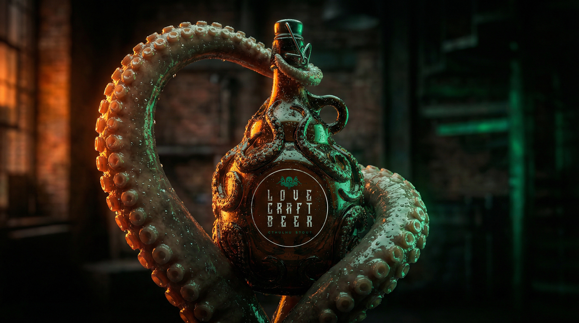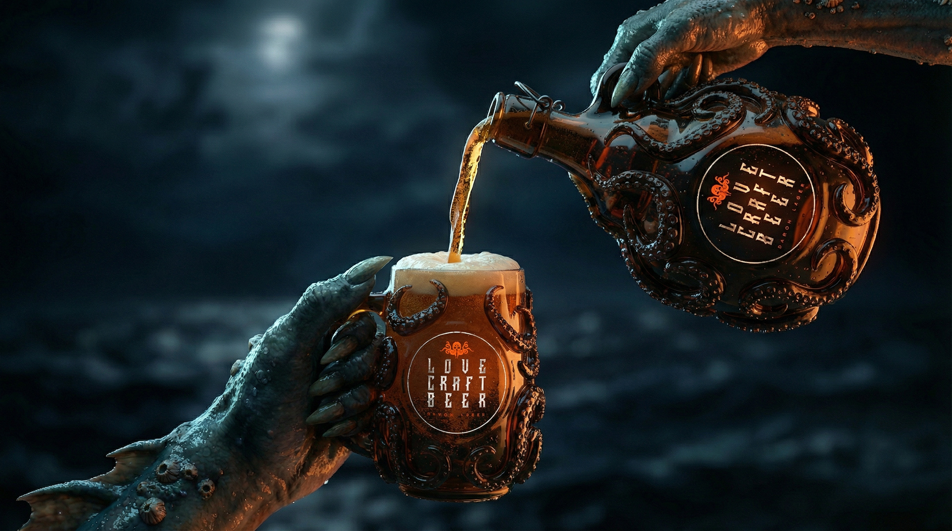 Design and animation for a craft beer brand inspired by the style of writer H. P. Lovecraft.